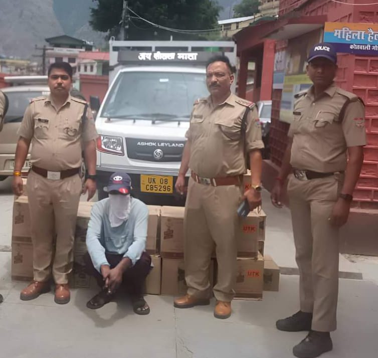 मंगलवार को कोतवाली जोशीमठ पुलिस द्वारा मुखबिर की सूचना पर वाहनों की चेकिंग के दौरान एक पिकअप वाहन जो सब्जी की आड़ में मलारी की तरफ अवैध अंग्रेज शराब लेे जा रहा था। सूचना पर वाहन की वाहन की चैकिंग के दौरान वाहन में 26 पेटी अवैध शराब बरामद की गई। पुलिस द्वारा सुराईथोटा बाजार के आगे लोहे के पुल के पास चेकिंग के दौरान अभियुक्त देवेंद्र कुमार पुत्र राजेश कुमार निवासी ग्राम-सैफपुर खादर थाना मंडावर जनपद बिजनौर उत्तर को वाहन संख्या UK-08-CB-5296 (पिकअप) में 18 पेटी (McDowell’sNo1 Whisky) व 08 पेटी (Royal Stag Whisky) मार्का अवैध अंग्रेजी शराब परिवहन करते गिरफ्तार कर व्यक्ति के खिलाफ विभिन्न धाराओं में कोतवाली जोशीमठ पर मु0अ0सं0-18/2024, धारा-60/72 आबकारी अधिनियम के तहत मुकदमा दर्ज किया गया।