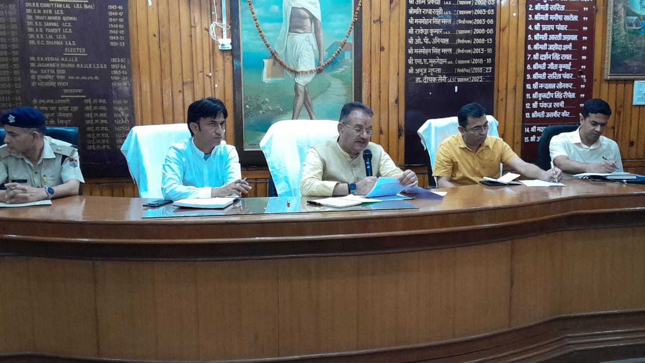 मसूरी : नगर पालिका सभागार में शहर की समस्याओं व व्यवस्थाओं को लेकर कैबिनेट मंत्री गणेश जोशी ने अधिकारियों की बैठक ली जिसमें जनता की ओर से समस्याओं को अवगत कराया गया व विभागों की लापरवाही पर मंत्री गणेश जोशी ने अधिकारियों को जमकर फटकार लगायी व समस्याओं के समाधान करने को कहा।