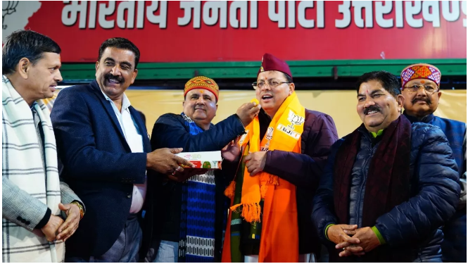 समान नागरिक संहिता विधेयक पारित होने पर पुष्पवर्षा कर CM धामी का अभिनंदन, जोरदार आतिशबाजी के साथ बांटी गई मिठाई