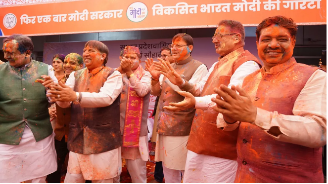मुख्यमंत्री धामी ने कार्यकर्ताओं संग मनाई होली, राज्यपाल ने दी बधाई