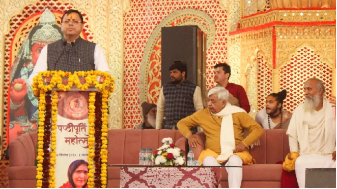सीएम धामी बिना किसी नेता का नाम लेते हुए कहा कि अब भव्य राम मंदिर का निर्माण देखकर लोग बनने लगे हैं कि हम भी अयोध्या आना चाहते हैं। उन्होंने कहा कि प्रधानमंत्री नरेन्द्र मोदी ने ये सब किया है। वह न कभी रुके और न ही झुके, इसी का परिणाम है कि ये काम चरितार्थ हो रहा है। हमने प्रधानमंत्री मोदी से प्रेरणा लेकर कठिन कामों को भी देवभूमि में बढ़ाने का काम किया है। हम समान नागरिक संहिता पर भी आगे बढ़ेंगे। मतांतरण और नकल रोकने के साथ ही लैंड और लव जेहाद के लिए भी कड़े कानून बनाए। उन्होंने कहा कि जब हम बताते हैं कि हम उत्तराखंड के हैं, तो हमारे प्रति दूसरों के सोचने का भाव अलग होता है। देवभूमि का मूल स्वरूप बना रहे, इसके लिए अतिक्रमण को भी हटाने का संकल्प लिया है।